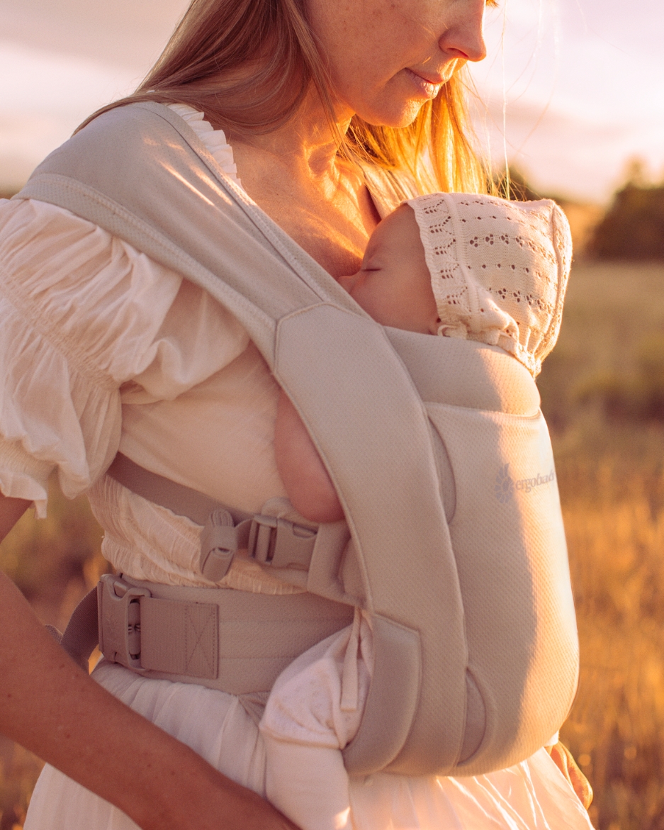 Beebi kasvades võimaldavad laiad ristuvad õlarihmad ja reguleeritav vöörihm mugavat sobivust erinevatele kehaehitustele. Kandekott on kompaktne ja kerge, keritav ning mahub mugavalt mähkmetaskusse või kotti.