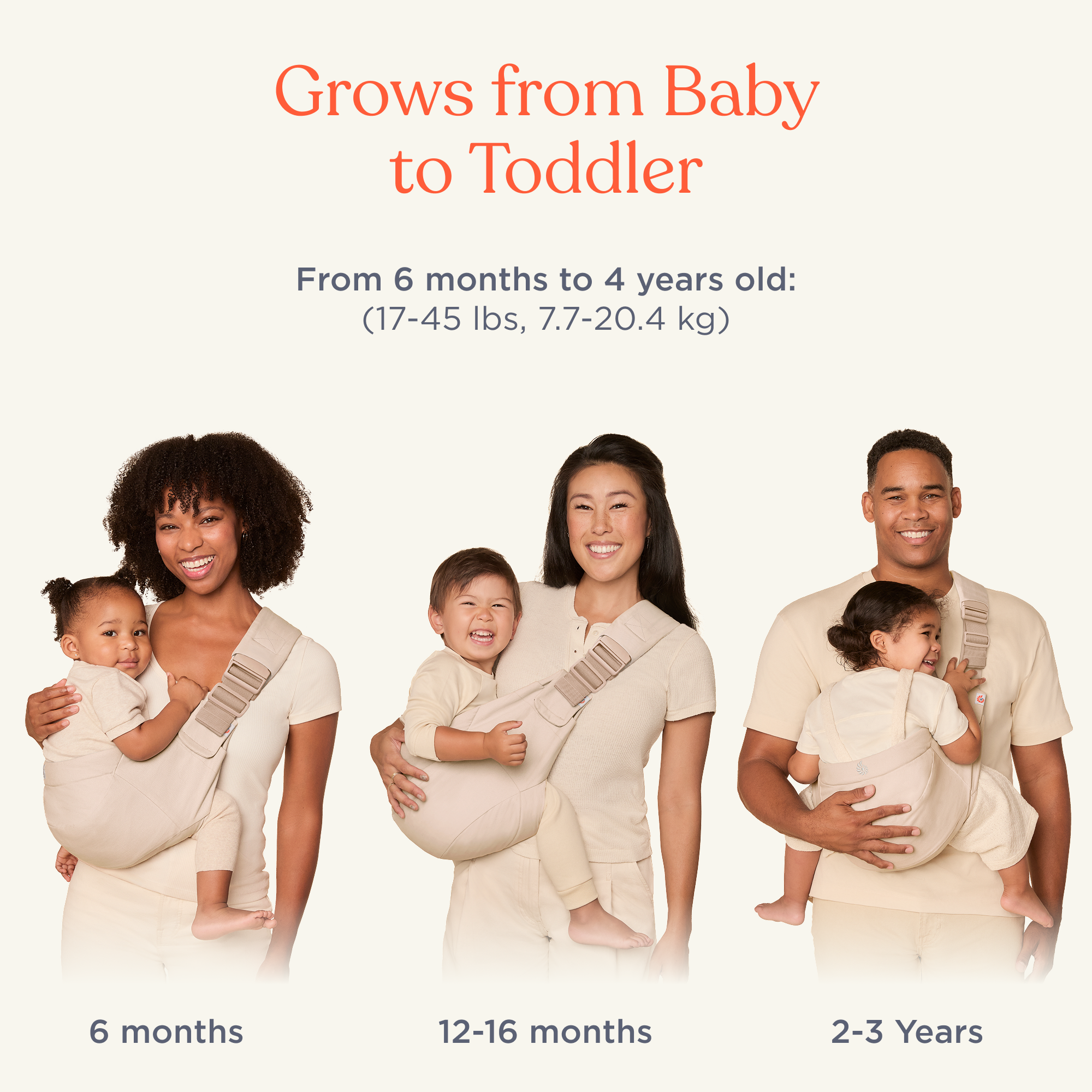 Puusal kandmine - näoga vanema poole (6+ kuud)